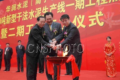 十二月二十六日,華潤水泥(南寧)日產(chǎn)四千噸新型干法水泥生產(chǎn)線在廣西南寧正式點火投產(chǎn),同時第二條生產(chǎn)線也順利開工建設(shè)。該項目總投資十三點五億元,兩條生產(chǎn)線全部建成投產(chǎn)后,將形成年產(chǎn)水泥熟料三百三十萬噸、水泥四百萬噸的生產(chǎn)能力,預(yù)計年銷售收入十億元。圖為華潤(集團)有限公司總經(jīng)理宋林(中)出席點火儀式。