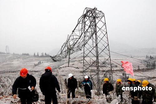 1月31日,由于遭受連日的嚴(yán)重冰雪災(zāi)害襲擊,廣西電網(wǎng)已經(jīng)已累計(jì)停運(yùn)變電站十八個(gè),停運(yùn)線路一百多條。其中,桂林網(wǎng)區(qū)最為嚴(yán)重,線路和高壓電塔大面積覆冰,面臨斷電危險(xiǎn)。廣西電網(wǎng)公司緊急調(diào)用南寧、柳州等多個(gè)地方的一千多名員工,深入基層搶修電網(wǎng)。中新社發(fā)林希平攝