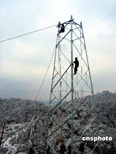 2月1日,貴州電建二公司工人正在搶修位于龍里縣210國(guó)道附近觀(guān)音山上垮塌的電網(wǎng)。由于貴州出現(xiàn)持續(xù)低溫、凝凍天氣,電網(wǎng)線(xiàn)上的覆冰加厚。據(jù)悉,貴州電建二公司工人在山上持續(xù)作業(yè)已達(dá)10余天。中新社發(fā) pengnian攝 來(lái)源:中國(guó)新聞網(wǎng) |