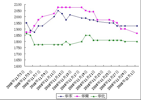 歐洲市場(chǎng):日前,歐盟委員會(huì)正醞釀一項(xiàng)總額1300億歐元的經(jīng)濟(jì)刺激計(jì)劃,各成員國(guó)拿出相當(dāng)于本國(guó)GDP1%的資金用于歐盟統(tǒng)一行動(dòng)。但該計(jì)劃尚未正式出爐,歐盟內(nèi)部已出現(xiàn)意見(jiàn)分歧。該地區(qū)前途迷茫的經(jīng)濟(jì)形勢(shì)更是讓此地現(xiàn)貨貿(mào)易商心情跌至冰點(diǎn),悲觀的看空心理愈發(fā)濃重,市場(chǎng)的零星報(bào)盤(pán)至今仍盼不到遞盤(pán)的回應(yīng),更無(wú)從說(shuō)可以確認(rèn)的交易。周四歐洲市場(chǎng)FOB收盤(pán)價(jià)較前期暴跌48歐元/噸至160.50-161.50歐元/噸。