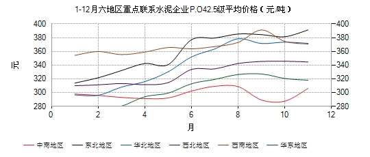 08年1-12月重點(diǎn)聯(lián)系水泥企業(yè)p.042.5級(jí)平均價(jià)格(元/噸)