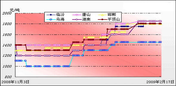 今日,中南地區(qū)多家鋼廠表示:從17號開始,將焦炭采購價格全部下調(diào)50元/噸。春節(jié)后,持續(xù)回升的價格讓國內(nèi)焦炭市場呈現(xiàn)出一派欣欣向榮的景象,而此時,做為焦炭消費大戶的鋼鐵企業(yè)卻并沒有那么樂觀,因為就在春節(jié)后的第二周,多個品種的鋼材價格相繼回落。 去年底,在國家連續(xù)出臺“利好政策”的刺激下,之前一直處于減產(chǎn)狀態(tài)的鋼鐵企業(yè)開始陸續(xù)提產(chǎn)、甚至是復(fù)產(chǎn)。因此,在一定程度上提升了對鋼鐵原燃料的消費需求,加上春節(jié)期間小煤礦的停產(chǎn)因素,使得焦煤、焦炭的市場供應(yīng)明顯偏緊,價格節(jié)節(jié)攀升。 根據(jù)聯(lián)合金屬網(wǎng)監(jiān)測的焦炭價格數(shù)據(jù)顯示:國內(nèi)焦炭價格從去年11月份開始觸底反彈,經(jīng)過連續(xù)三月的上漲,2月初,國內(nèi)一級冶金焦價格已經(jīng)接近2000元/噸,二級冶金焦價格保持在1800元/噸左右。