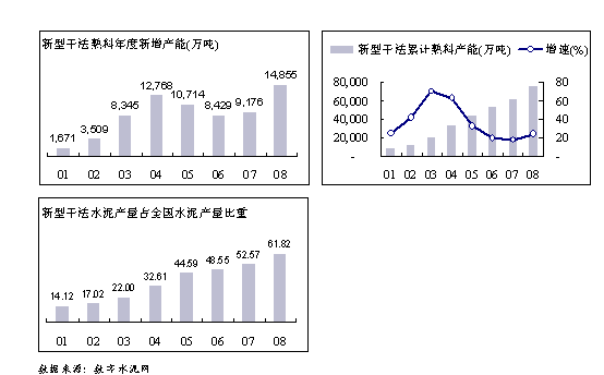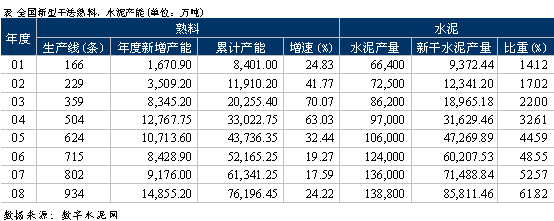在13.88億噸的水泥總產(chǎn)量中,新型干法水泥產(chǎn)量占到了61.82%,達(dá)85,811.46萬噸。新型干法水泥比重大幅提升了9.25個(gè)百分點(diǎn)。這一方面是新型干法生產(chǎn)線的大量投產(chǎn),另一方面是淘汰落后產(chǎn)能力度的加大,給新型干法水泥騰出了空間。