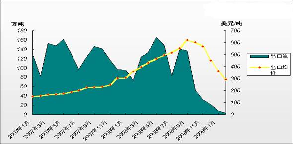 出口配額數量大幅下降,焦炭出口關稅繼續(xù)執(zhí)行40%。自2008年8月20日,焦炭出口關稅被上調至40%以來,中國焦炭出口量就呈現出直線回落態(tài)勢。