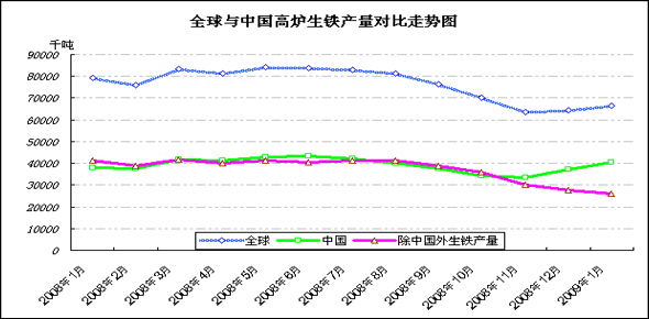 2008年下半年以來,受美國金融危機影響,全球經濟增速趨緩,鋼鐵市場持續(xù)低迷。因此,主要用于高爐煉鐵的焦炭需求也被大幅壓縮。中國的焦炭產量占世界總產量的一半以上,焦炭出口量占全球貿易量的60%。因此除中國外,其他國家的生鐵產量下降,直接影響到我國的焦炭出口市場。見圖2.
