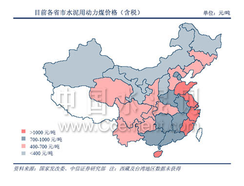 但由于地區(qū)不同,煤電成本的價(jià)格區(qū)域性差異也更加明顯。購(gòu)進(jìn)價(jià)格對(duì)比顯示:煤炭采購(gòu)成本更具優(yōu)勢(shì)的地區(qū)主要集中于中西部,尤其是西北和華北地區(qū),而相對(duì)不利的區(qū)域是華東沿海省份。區(qū)域水泥用電力購(gòu)進(jìn)價(jià)格對(duì)比顯示:其結(jié)論與煤炭對(duì)比分析部分基本相似,即中西部處于更為有利位置。煤電價(jià)格高的地區(qū)水泥綜合生產(chǎn)成本往往較高,煤電成本占比也較大,在煤電價(jià)格同樣漲幅的情況下所面臨的成本上升壓力更大。