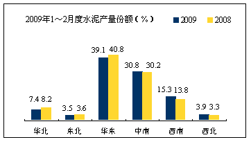 ◆ 華東地區(qū)1~2月份水泥產(chǎn)量占全國39.1%,較去年下降1.8個(gè)百分點(diǎn); ◆ 西北、西南、中南水泥產(chǎn)量同比增長19%以上。 點(diǎn)評: 受基本建設(shè)投資和災(zāi)后重建拉動(dòng),西北、西南水泥產(chǎn)量繼續(xù)保持快速增長的態(tài)勢,今年最看好的地區(qū)仍然是中西部地區(qū),尤其是西南和西北地區(qū)。 |