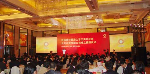 3月23日下午3時23分,中國建材股份有限公司在北京香格里拉飯店舉行上市三周年慶典暨北方水泥成立揭牌儀式。