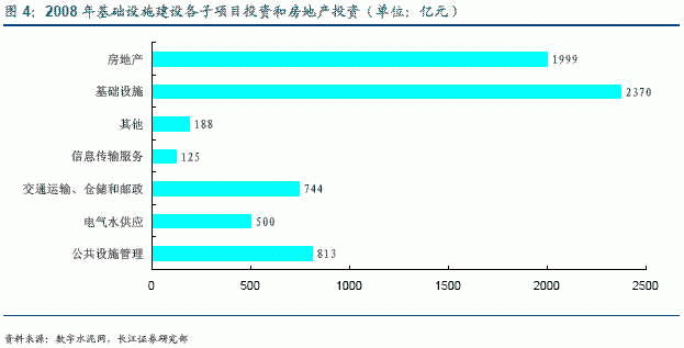 消耗水泥的基建項(xiàng)目份額太少:基建項(xiàng)目中消耗水泥較多的兩項(xiàng)為交通運(yùn)輸、倉(cāng)儲(chǔ)和郵政業(yè),水利環(huán)境和公共設(shè)施管理業(yè),這兩項(xiàng)2008年投資額為1557億元,低于房地產(chǎn)投資1999億元;基建投資向改善民生項(xiàng)目?jī)A斜:由于浙江的交通運(yùn)輸系統(tǒng)比較完備,近兩年交通運(yùn)輸、倉(cāng)儲(chǔ)和郵政業(yè)投資增速最低(4.68%);而涉及改善民生的水利環(huán)境和公共設(shè)施管理投資、衛(wèi)生設(shè)施和合文化藝術(shù)以及電信網(wǎng)絡(luò)項(xiàng)目等投資增速最快;