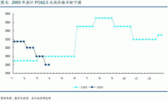 水泥價(jià)格目前處于底部,但未來(lái)上漲壓力較大2009年3月以來(lái),杭州市高標(biāo)號(hào)水泥價(jià)格連續(xù)下調(diào)4次,目前省內(nèi)大部分水泥企業(yè)都處在盈虧平衡點(diǎn)以下,價(jià)格基本上已經(jīng)達(dá)到底部;目前價(jià)格停止下調(diào)主要是靠企業(yè)停產(chǎn)限產(chǎn)實(shí)現(xiàn)的,一旦水泥價(jià)格上漲,開(kāi)工率勢(shì)必提高抑制價(jià)格上漲。