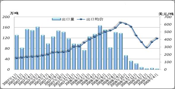 圖7 2007-2009年全國焦炭月出口量對比走勢圖
