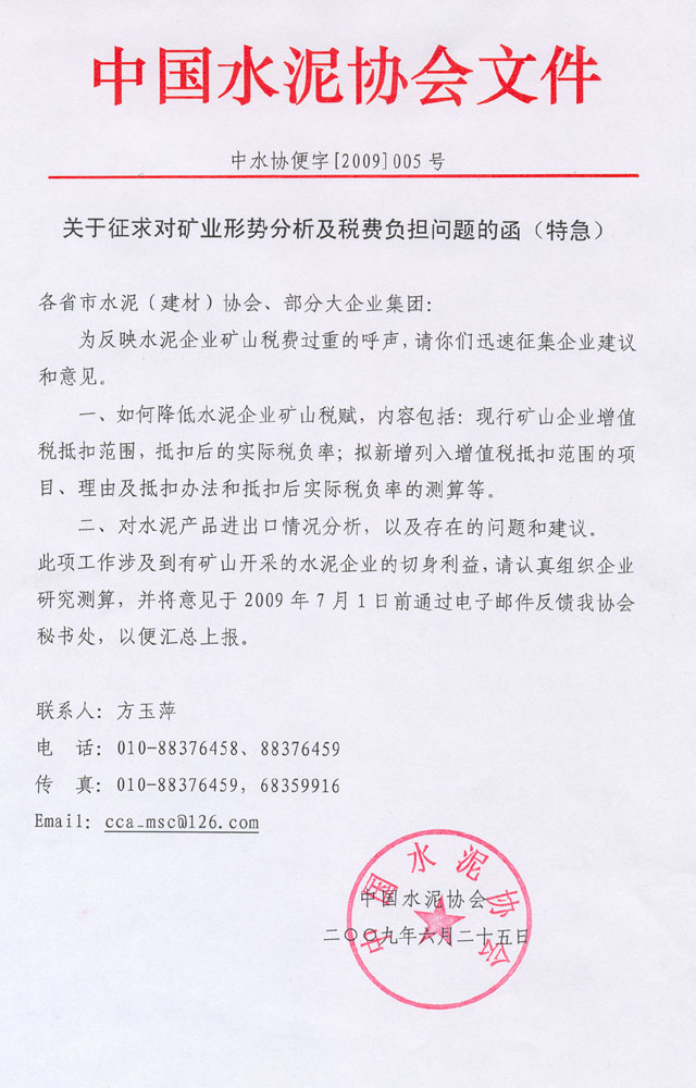 關(guān)于征求對(duì)礦山形勢(shì)分析及稅費(fèi)負(fù)擔(dān)問題的函(特急)
