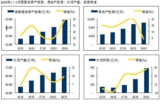 水泥是受宏觀經(jīng)濟(jì)拉動(dòng)較強(qiáng)的行業(yè),固定資產(chǎn)投資、房地產(chǎn)投資都遠(yuǎn)超預(yù)期,今年1~5月以來國內(nèi)基礎(chǔ)投資建設(shè)力度加大: