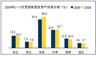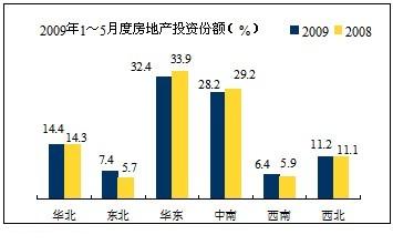 從各地區(qū)房地產(chǎn)投資份額情況來看,增長(zhǎng)較高的是東北地區(qū)從5.7%提高7.4%,華北、西南、西北略有增長(zhǎng),華東、中南與去年同期相比各下降1個(gè)百分點(diǎn)。