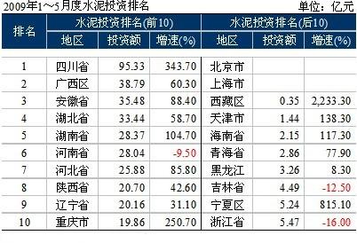 四川省1~5月水泥投資95.33億元,同比增長(zhǎng)3倍以上。四川災(zāi)后重建,企業(yè)積極性高漲,但也引起業(yè)內(nèi)外對(duì)市場(chǎng)容量和布局的擔(dān)憂。2009年新投生產(chǎn)線非常驚人,根據(jù)得到的資料有多種版本,綜合判斷2009年新投生產(chǎn)線在30~50條。