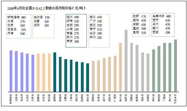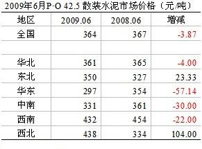 從數(shù)字水泥網(wǎng)1~6月全國平均價(jià)格跟蹤中可以明顯看到,全國P?O 42.5噸水泥價(jià)格364元,略低于去年同期水平,西北和西南地區(qū)在400元/噸以上,高出全國平均水平70元/噸。尤其是西北地區(qū)同比高出104元/噸,可見利潤之豐厚。但西南地區(qū)的價(jià)格同比已下降22元/噸,這不僅是近兩個(gè)月四川帶頭阻擊外埠水泥入川下調(diào)價(jià)格所致,也是市場(chǎng)供需狀態(tài)的一個(gè)反映。