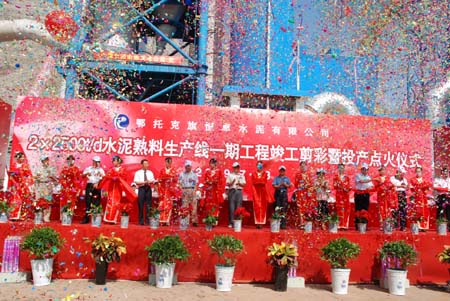 7月18日,內(nèi)蒙古鄂爾多斯市棋盤井鎮(zhèn)鑫宇集團恒卓水泥公司建設工期近一年的兩條日產(chǎn)2500噸新型干法熟料水泥生產(chǎn)線一期工程在此成功進行點火投產(chǎn)儀式。