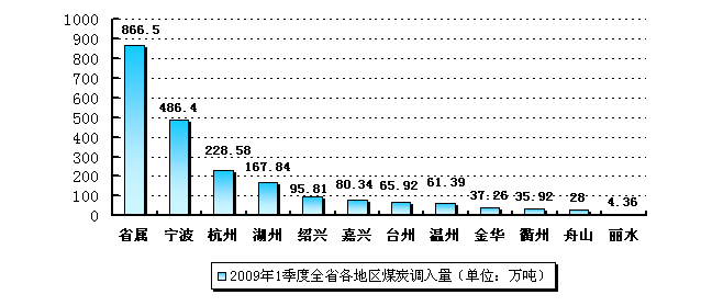 圖1:2009年一季度省外各地區(qū)煤炭調(diào)入情況