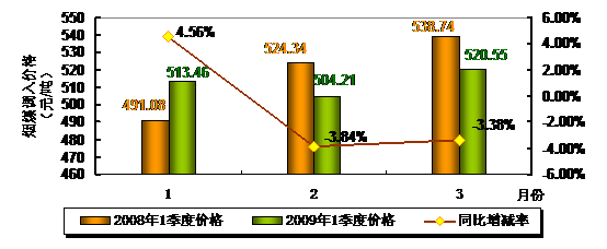 圖3:2009年一季度煙煤調(diào)入價格變化情況