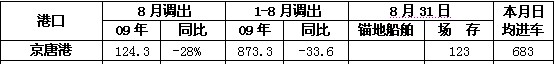 京唐港8月份煤炭調(diào)出統(tǒng)計(jì)