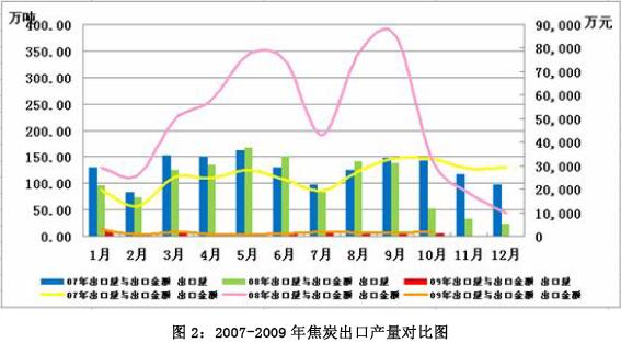 受全球金融危機影響,歐盟、美國、日本和韓國等中國焦炭的傳統(tǒng)需求國,從2008 年下半年以來紛紛縮減鋼鐵產(chǎn)量。歐洲鋼鐵聯(lián)合會預(yù)計2009 年歐洲鋼鐵消費與2008 年相比將下降33%,作為煉鋼重要原料的焦炭的需求也隨之逐步萎縮。此外,焦炭行業(yè)已于2007 年被納入國家節(jié)能減排重點行業(yè),焦炭屬于典型的“兩高一資”產(chǎn)品,為了調(diào)整出口結(jié)構(gòu),國家經(jīng)過多次的關(guān)稅上調(diào),至2008 年8 月20 日焦炭出口暫定稅率由25%進一步提高至40%,并一直維持至今,由于高關(guān)稅的限制作用,焦炭出口已無利潤空間,抑制了企業(yè)出口積極性。