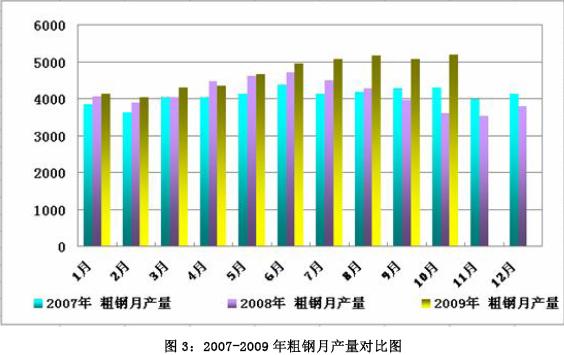 三、09 年1-10 月份中國粗鋼產(chǎn)量4.16 億噸同比減少2.4%