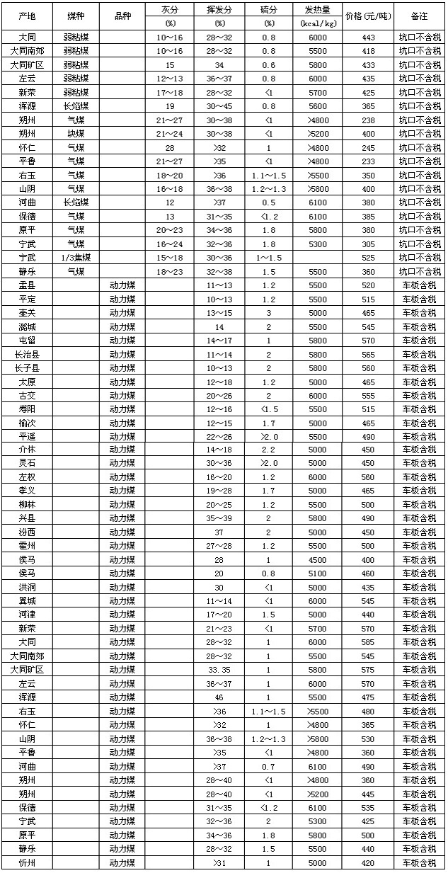 12月31日山西省其他煤種價(jià)格行情