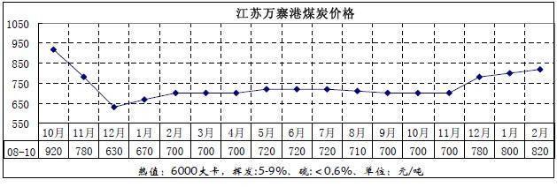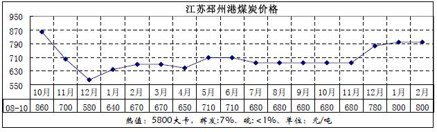 2月份我國(guó)華東地區(qū)煤炭?jī)r(jià)格變化圖