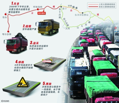因繞行成本過大,進京的大貨車寧愿堵車也依然會選擇京藏高速。據(jù)了解,一些運私煤的車輛也是在有意躲避煤檢站,而超載則是因為高速的收費點過多,彌補成本損失所為。但同時,在高速公路治理超載的過程中,限流卡口、以罰代管也更加使堵車情形加劇。