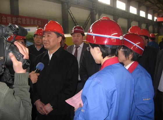 上圖:2011年4月10日安監(jiān)總局黨組成員黃毅總工程師在磐石科技救生艙車間接受媒體采訪,對磐石發(fā)展緊急避險設(shè)施項目給予充分肯定和鼓勵。