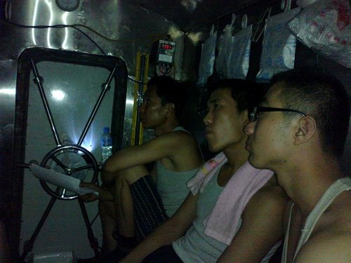 上圖:艙內(nèi)值班人員在認真觀察儀器儀表并每半小時記錄一次數(shù)據(jù)