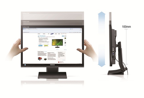 三星SA450提供了符合人體工程學(xué)設(shè)計(jì)的可調(diào)式底座,能夠支持垂直旋轉(zhuǎn)與上下移動(dòng),
