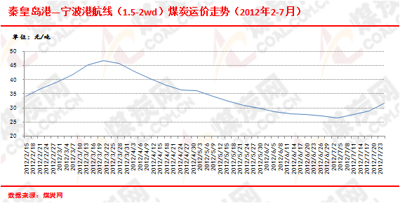 而在煤價方面,作為浙江省主要的煤炭接卸港口,寧波港動力煤價格自7月下旬開始顯現(xiàn)出逐步企穩(wěn)的跡象,港口動力煤價格期間出現(xiàn)了5-10元/噸的漲跌。另外,秦皇島港至寧波港(1.5-2萬噸)航線煤炭船運(yùn)費(fèi)目前已經(jīng)漲至33元/噸,較月初上漲6.6元/噸。