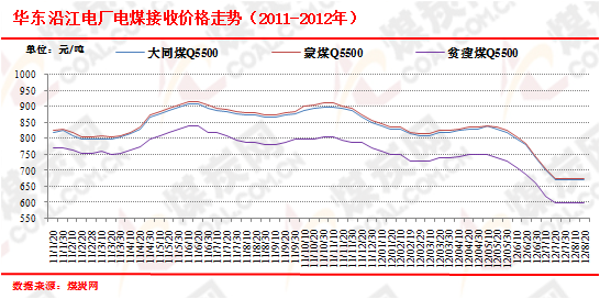 華東沿海電廠方面,2012年8月中旬截至18日,華東沿海電廠電煤接收價整體繼續(xù)保持平穩(wěn),目前華東沿海電廠電煤接收價已是連續(xù)四旬期持平,其中各電廠接收貧瘦煤Q5500、蒙煤Q5500價格分別為600元/噸、675元/噸。