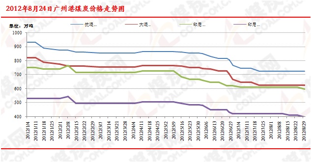截止到8月30日,廣州港存煤255.43萬噸,較上周同期相比減少5.65萬噸。本周港口煤炭庫存持續(xù)減少,主要由于進口量的減少造成港口存煤下降。