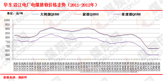 華東電廠煤炭接收方面,2012年8月下旬截至30日,華東沿江電廠電煤接收價格除5800大卡大同煤價下調(diào)10元/噸之外,其余煤炭接收價較中旬期繼續(xù)持平,其中,太倉華能、南通華能、上海石洞二電廠接收5500大卡大同煤670元/噸,接收5800大卡大同煤730元/噸;夏港電廠、揚州二電接收5000、5500大卡蒙煤價格分別為575元/噸、675元/噸;上海石洞一、天生港電廠接收5000、5500大卡貧瘦煤價格分別為550元/噸、600元/噸。至此,華東沿江電廠接收除5800大卡以外煤炭價格已經(jīng)連穩(wěn)五旬期(如下圖)。