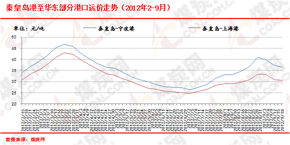 華東沿海煤炭運輸市場低位運行,運價跌幅較上期大幅收窄,自9月14日至9月21日,秦皇島港至寧波港(1.5-2萬噸)煤炭海運費微降0.8元/噸至36.1元/噸;秦皇島港至上海港(4-5萬噸)煤炭運費微降0.3元/噸至30.4元/噸;秦皇島港至張家港(2-3萬噸)煤炭運費降0.9元/噸至36.9元/噸。國內(nèi)動力煤市場繼續(xù)呈現(xiàn)好轉(zhuǎn)跡象,加上大秦線檢修、冬儲煤等因素支撐北方港口動力煤價格持續(xù)微漲,沿海航運市場活躍度略增,運價大幅下跌的可能性不大。