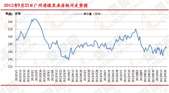 港口庫存方面:煤炭網(wǎng)信息研究中心數(shù)據(jù)顯示,9月23日,廣州港存煤270.52萬噸,較上周同期增加20.97萬噸。其中新沙公司存煤138萬噸;周環(huán)比增加16萬噸;西基公司存煤54萬噸,環(huán)比減少2萬噸;新港公司存煤9.7萬噸,環(huán)比增加6.1萬噸;黃埔公司存煤68.82萬噸,環(huán)比增加0.88萬噸。