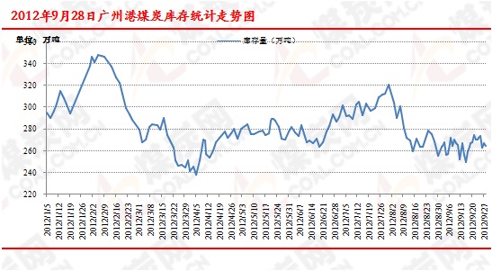 港口庫存方面:煤炭網(wǎng)信息研究中心數(shù)據(jù)顯示,9月27日,廣州港存煤267.03萬噸,較上周同期減少0.71萬噸。其中新沙公司存煤142萬噸;周環(huán)比增加3萬噸;西基公司存煤48萬噸,環(huán)比減少7萬噸;新港公司存煤11.1萬噸,環(huán)比增加5.6萬噸;黃埔公司存煤65.85萬噸,環(huán)比減少4.34萬噸。